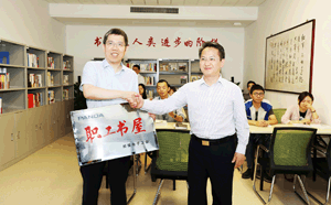5月23日中午,sunbet官网装备职工书屋正式挂牌,sunbet官网电子党委副书记、纪委书记、工会主席易国富现场授牌并讲话(见上图,水吉摄)。公司工会向职工书屋赠书。此为sunbet官网电子挂牌的第四个职工书屋。