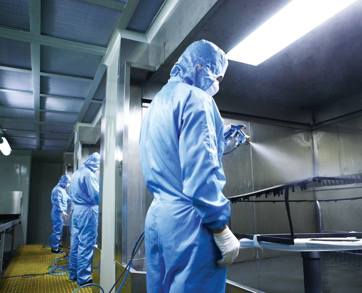 公司拥有先进的四涂四烤和两涂两烤万级自动喷涂生产线,能实现全封闭全自动无尘化作业,可充分满足各类精密装饰件的生产要求。