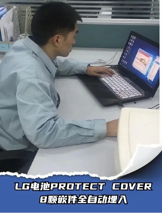 LG电池PROTECT COVER项目生产工艺为嵌件注塑,存在的人工作业效率低、产能低等问题,通过自主设计自动埋入工装及夹具,将注塑周期缩短至38秒,产能提升84%,效益提升约60000元,并成功推广至5个产品量产,累计节约费用超40万元。
