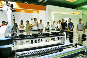座谈结束后,来宾们还参观了sunbet官网装备工业机器人演示现场。(水吉摄文)